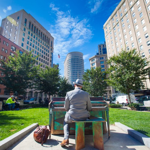 Now an annual tradition, we present free outdoor projects across the city and in some of Boston’s most iconic public spaces: Street Pianos Boston, Jazz Along the Charles along the Esplanade, Let’s Dance Boston on the Rose Kennedy Greenway, and more.