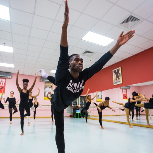 Participants at an Alvin Ailey American Dance Theater workshop at the Reggie Lewis Track and Athletic Center, 2024. Photo by Robert Torres.